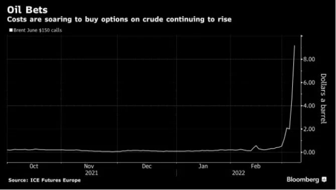 因此,国际原油价格多次出现单日涨幅7%甚至10%的涨幅。3月7日,伦敦布伦特原油价格一度突破130美元/桶,超过2012年每桶128美元的峰值;3月第一周,WTI原油期货上涨了26.3%,创2008年9月以来的新高。