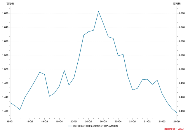 OECD国家陆上商业石油储备持续下降,来源:wind