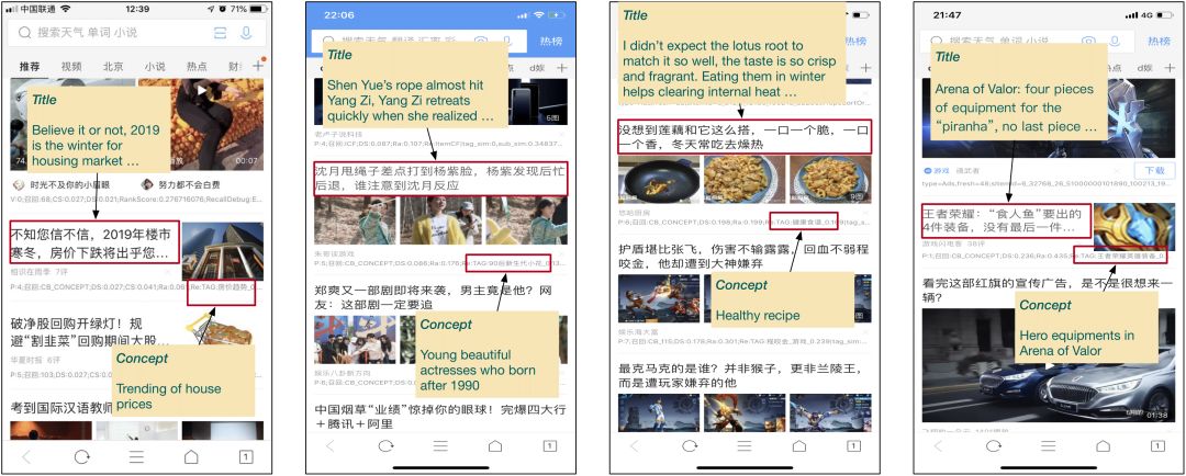 图5. ConcepT系统对文章打上概念标签。目前每天可处理96700篇文章,其中约35%可以打上概念标签。我们创建了一个包含11547篇文章的概念标记数据用以评测标记的准确率。人工评测发现,目前系统的标记准确度达96%。