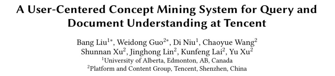 来自腾讯PCG移动浏览器产品部和阿尔伯塔大学的研究者构建了ConcepT概念挖掘标记系统,其利用query搜索点击日志从用户视角提取不同的概念,以便提高对短文本(query)和长文章(document)的理解,从而推动推荐,搜索等业务的提升。实验证明,ConcepT在 QQ 浏览器信息流业务中性能优异,曝光效率相对提升6.01%。目前,这篇长论文已经被 KDD 2019接收。