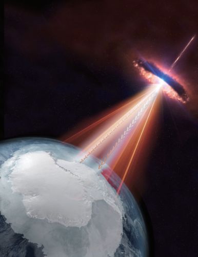 图 2 同时发出伽马射线和中微子的耀变体TXS 0506+056艺术想象图(图片来源:IceCube)