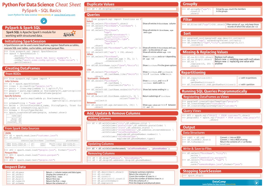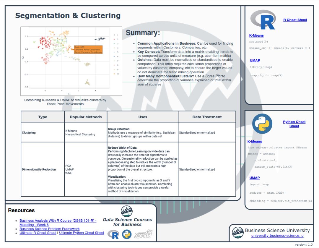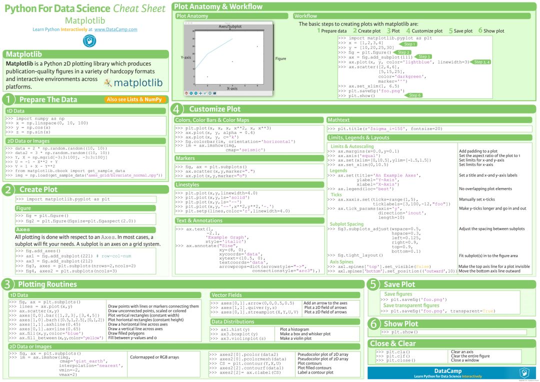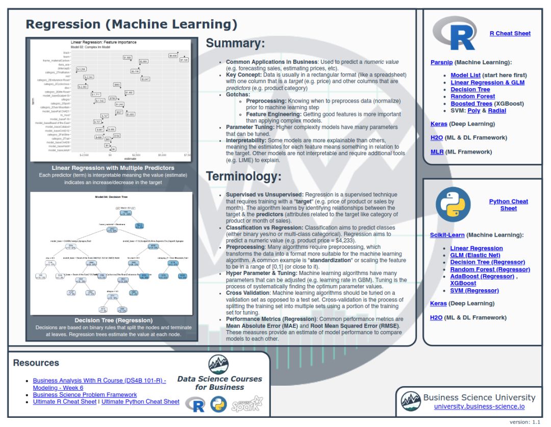 该数据科学速查手册总共包含了 10 大块内容,分别是: