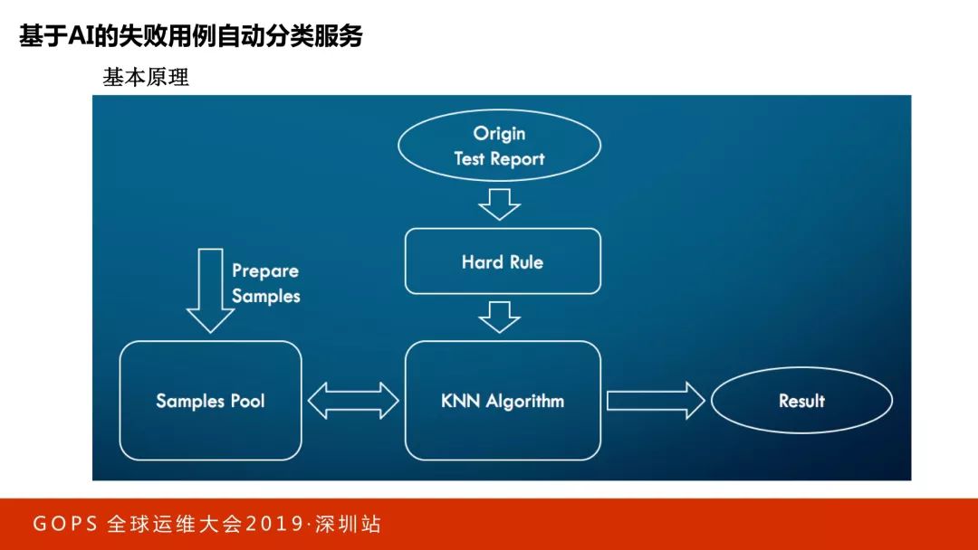 看一下测试结果分析,这部分比较有意思。大公司的回归测试用例数量往往都很大,百分之一的失败就是几十个乃至百个用例。我们第一步分析的目的是什么?仅仅把这个bug分配给正确的team,靠人做效率很差,我们能不能让机器来做?于是我们就引入了一个系统,该系统会根据Test report和test log,结合kNN算法来对失败用例进行分类,判断这个bug应该分配给哪个团队去继续跟进。
