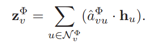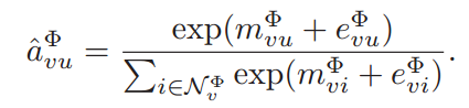 因此,我们可以使用 来屏蔽大量的对抗性/噪声邻居,通过softmax函数得到 :
