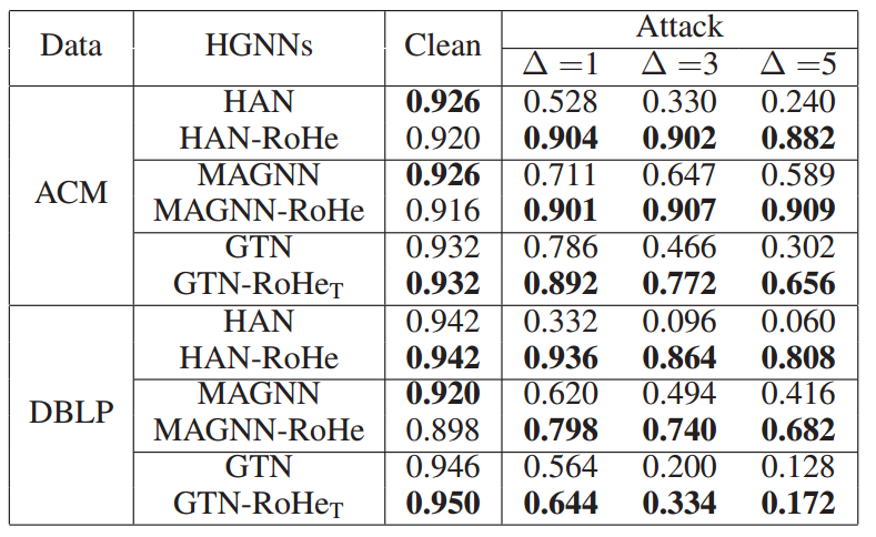 RoHe在HAN,MAGNN,GTN上的防御实验:证明了我们方法的泛化性