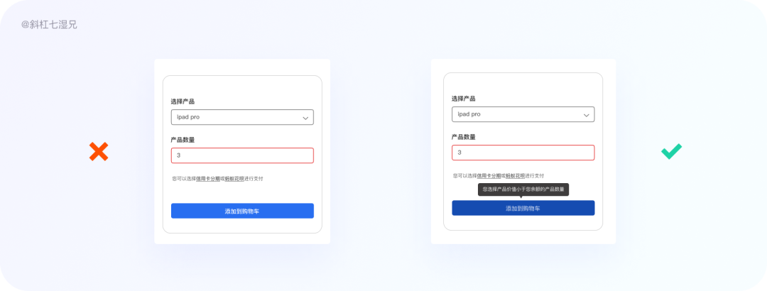 并且,在一些比较复杂或者是与交易金额有关的场景中,我建议除了把问题标红之外,还可以使用这种气泡弹窗的形式给予用户更加明确的帮助。比如下面这个案例,不仅仅是告诉用户“不要输入字符”,还应当告诉用户应该输入什么类型的文案才能算是正确填写信息。