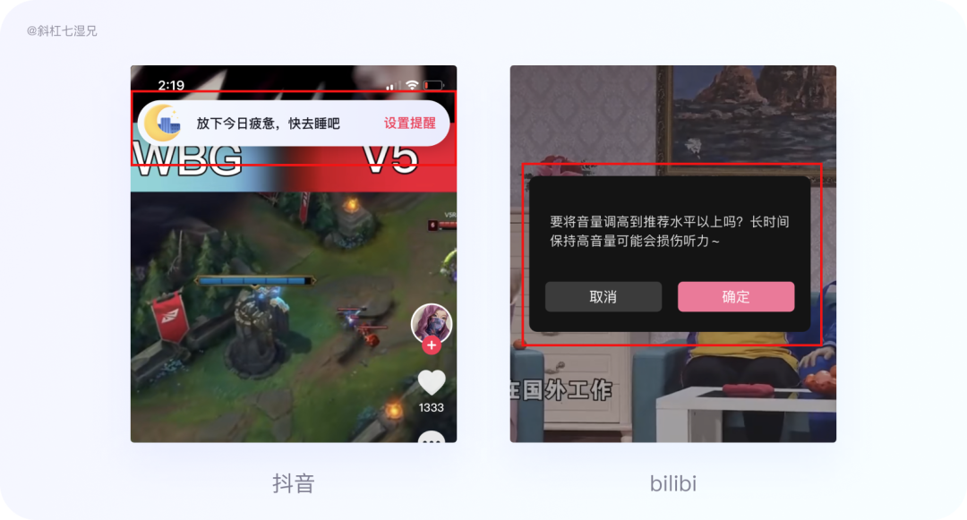 bilibi:我平常在地铁里面因为环境噪音会很大,我习惯性地把耳机的音量变高,此时,bilibi就会提醒我这个音量有损我的听力,我会潜意识地调到不那么大并且可以听清楚的程度,这样不仅可以保护好耳朵,又可以愉快地刷剧,体感很好。