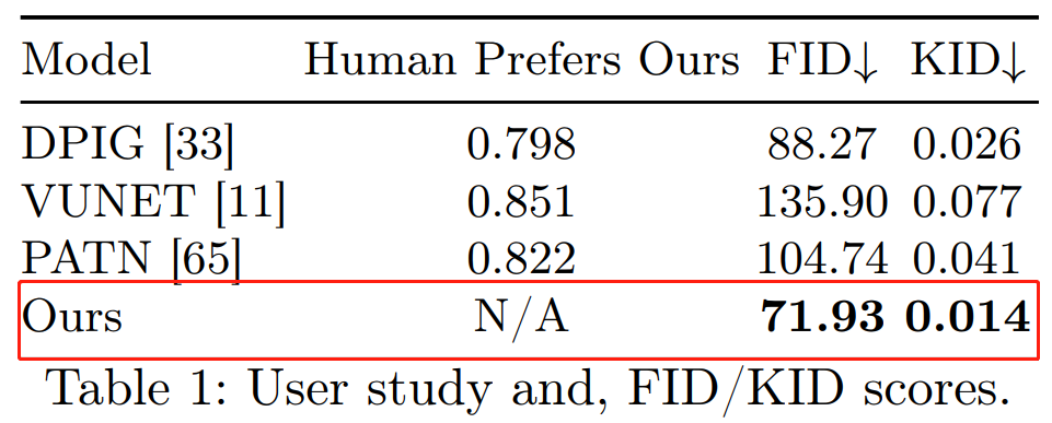 研究者在 Amazon Mechanical Turk (AMT)上对该方法以及 DPIG、VUNET 和 PATN 方法进行了用户研究。结果显示,该方法优于其他方法(如下表 1 所示)。