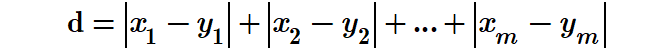 两个m维空间的点(x1,x2,..., xm)、(y1,y2,..,ym)的曼哈顿距离被定义为