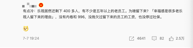 近日,有人在微博分享了一则“冷知识”:现在的乐视仍有 400 多名员工,无 996,无内卷。有网友因此开玩笑说,乐视员工这是过着“没有老板的神仙日子”。