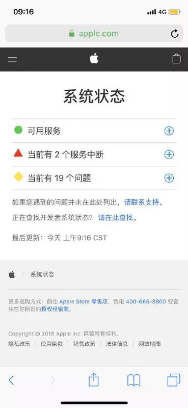 截止消息发布,苹果基于 iCloud 的服务有 19 个出现了间歇性问题。 但是,iMessage,地图流量(和搜索,路由和导航),iTunes U,Apple ID,Apple Music,App Store 和 Apple Pay 等服务仍然可以正常运行。
