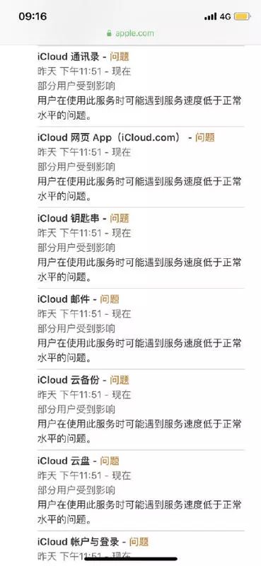 对于图中黄色部分的问题,苹果说“一些用户会受到影响”,“该服务的性能可能会比平常慢”,但是用户和第三方开发者都反馈说他们无法访问自己的 iCloud 数据。