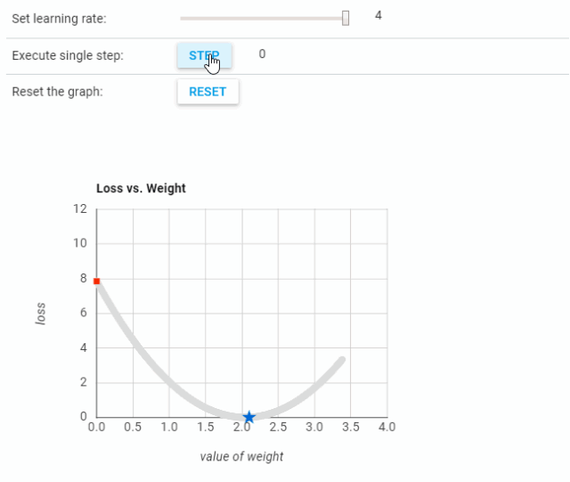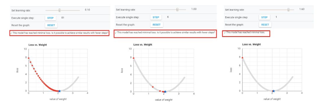 不同学习率的实验结果可参考:https://developers.google.com/machine-learning/crash-course/fitter/graph。