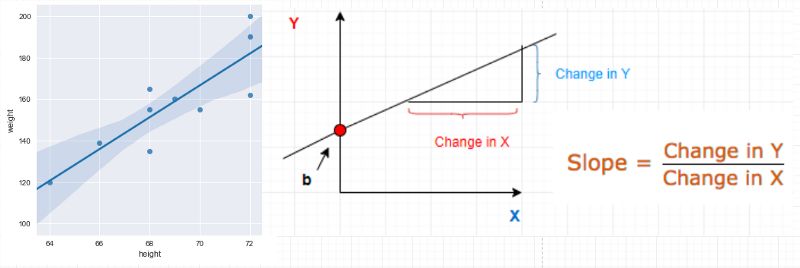 现在,让我们在空间中画一条任意的线,并使其穿过某些数据点。那么这条线的方程即为 Y = mX + b,其中 m 是斜率,b 是这条线在 Y 轴上的截距。