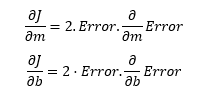 现在,我们来计算与 m 和 b 相关的误差的梯度:
