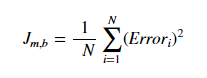 比如说,如果数据集中共有 N 个点,而对于所有这 N 个数据点,我们希望最小化其误差。因此成本函数就将是总平方误差,即: