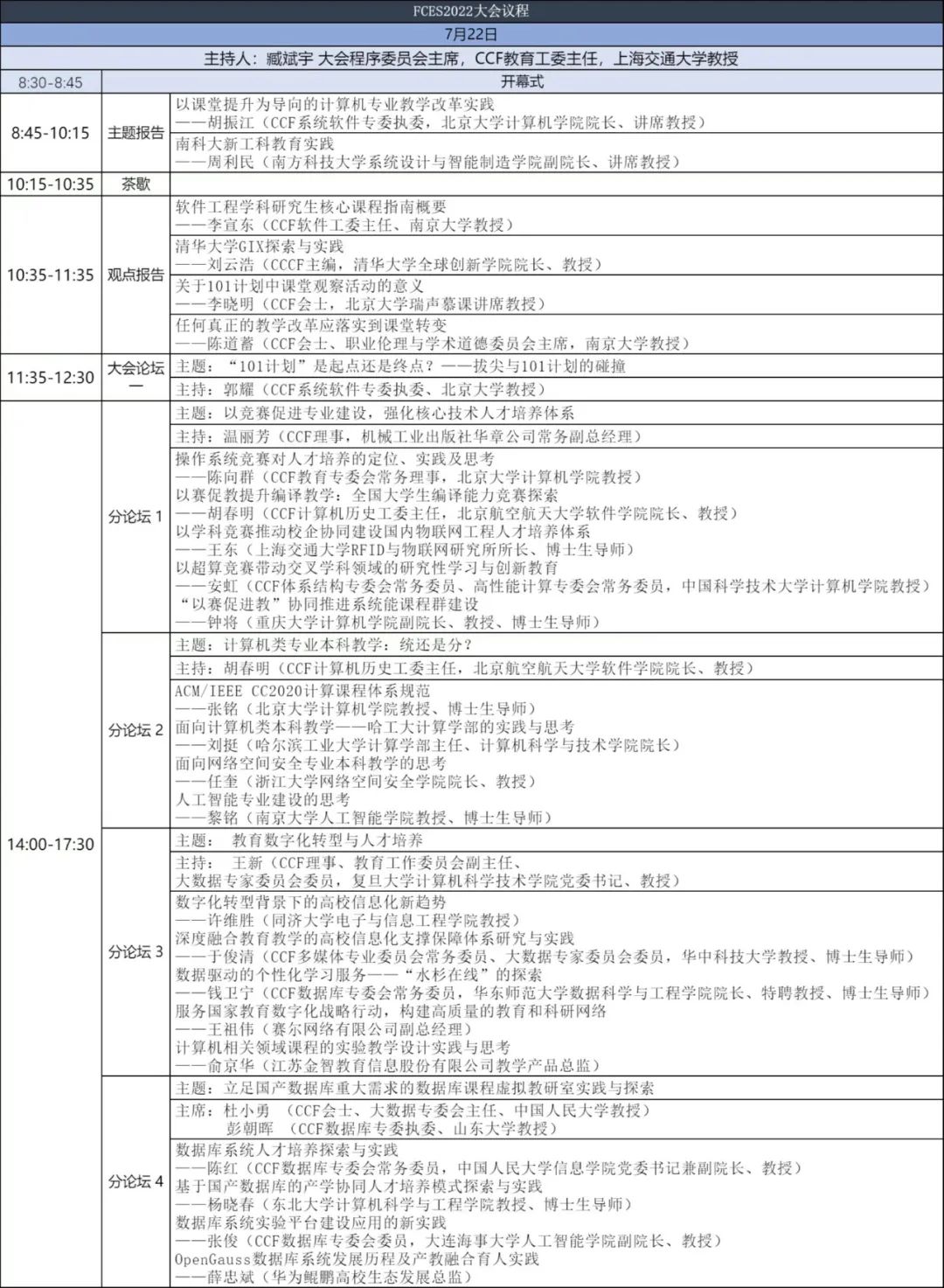 CCF未来计算机教育峰会(FCES 2022) 完整日程