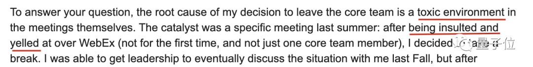 其中特别点出,去年夏天一次视频会议上他被人侮辱和大喊大叫,而且这已经不是第一次了。