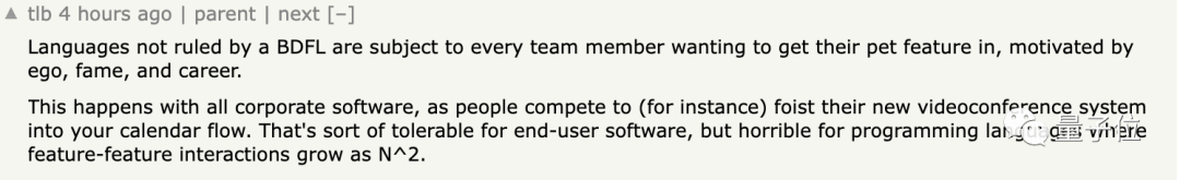 这位老哥认为所有不采用BDFL模式的编程语言都会因特性太多变得冗杂。