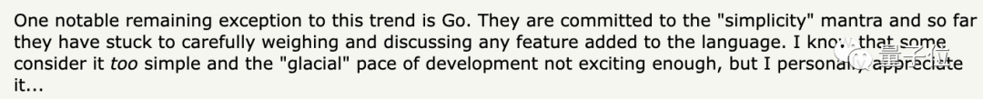 其他网友觉得也有一个例外,Go语言不是由仁慈的独裁者管理,但团队始终坚持简洁的设计理念。