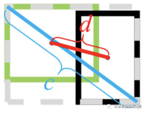 论文提出了能减少两个box中心点间的距离的惩罚项, 和