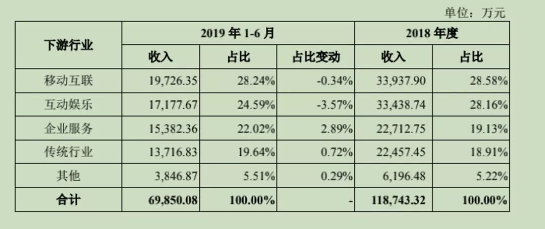 从UCloud的业务构成来看,UCloud移动互联、互动娱乐等业务占比正在缩小,而企业服务、传统行业却出现了一定程度的上升。