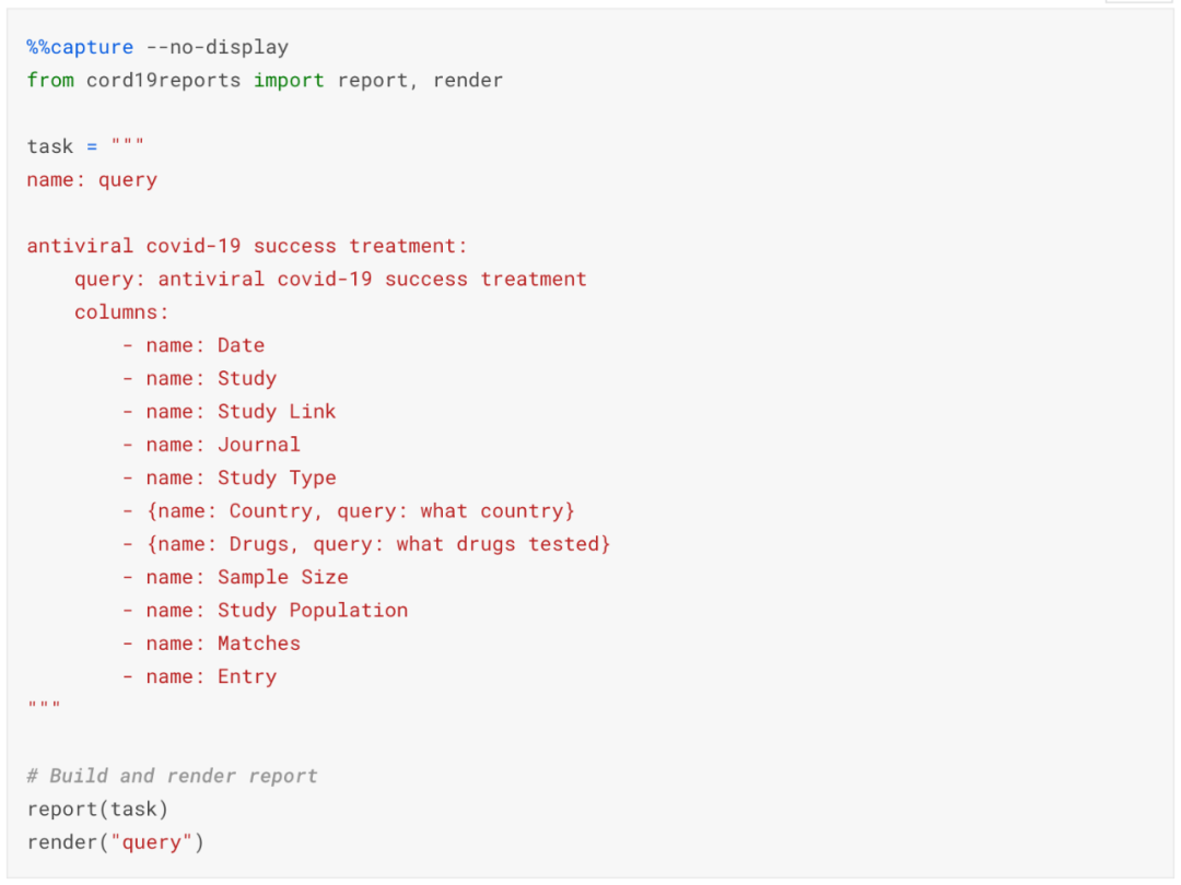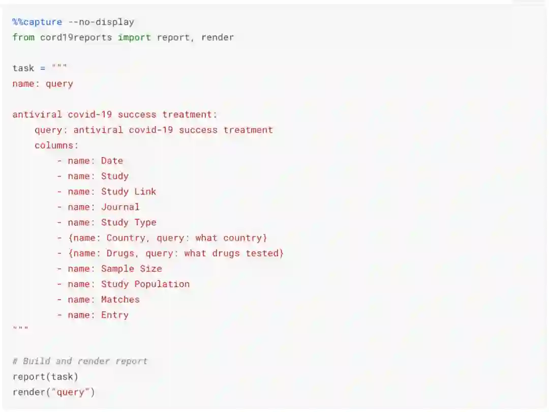 paperai 可以自动执行繁琐的文献综述工作,使研究人员不必为此耗费精力,从而能够聚焦自己的核心工作。该工具运行 query 筛选出符合特定标准的论文,并执行基于问答提取技术的 report 功能,从一组医疗 / 科学论文中找出关键问题的答案。