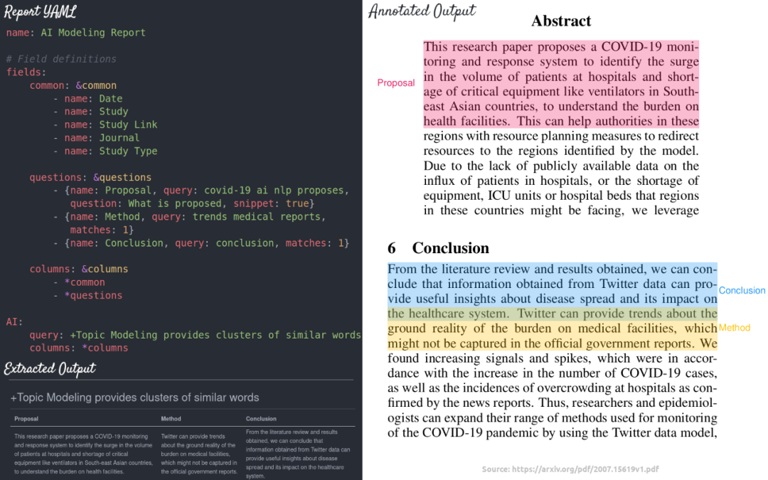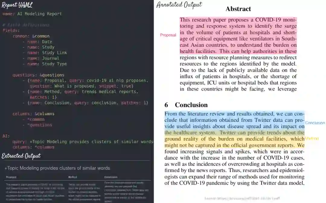 如上图所示,paperai 运行 query 和 report,得到问题的答案,并在论文中标注出来。