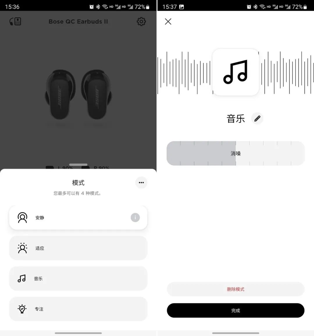 换句话说,虽然引入了「模式」这一概念,但 BOSE QuietComfort 消噪耳塞 II 本质上提供的还是 1~10 级降噪强度记忆功能,既然模式名称不能自定义,那为什么又要借着「自定义」之名做一套并不直观也不像索尼那样拥有场景化、智能化切换功能的模式设计呢?