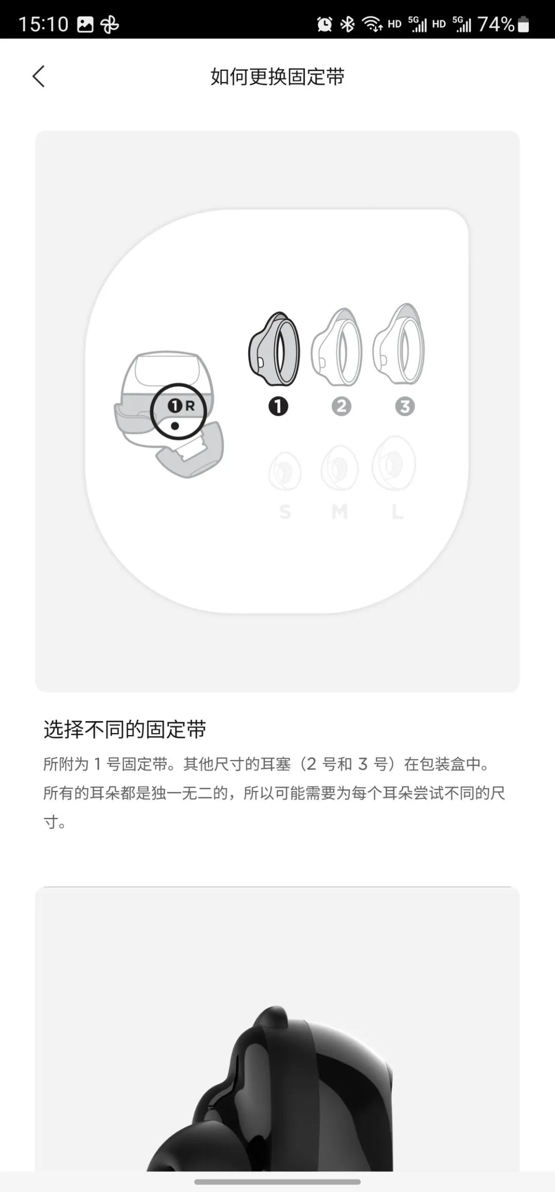 不过 BOSE QuietComfort 消噪耳塞 II 的实际佩戴体验依然不错。稳固环和耳套分体设计在实际选用、搭配过程中虽然带来了更多的麻烦,一旦确定下来,还是能够带来舒适度、隔绝性和稳固程度都不输「鲨鱼鳍」的安心感。