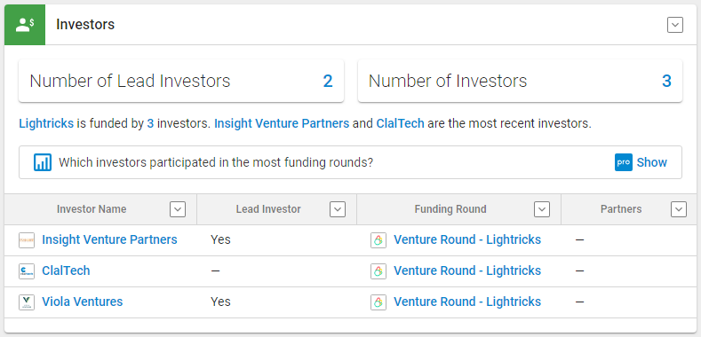 2018年11月19日,Lightricks公布第二笔融资情况,此次融资金额共计6000万美金元,来自于风投机构Insight Venture Partners领投、ClalTech公司跟投。
