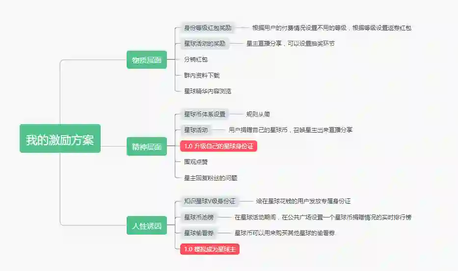 1、最后的方案和你开始说的「深度挖掘用户的价值、提升用户体验感、搭建用户生态等」关联性需要加强,比如说星球的商业模式单一,那有没有对应的激励或者运营方式来搞定这个事情;
