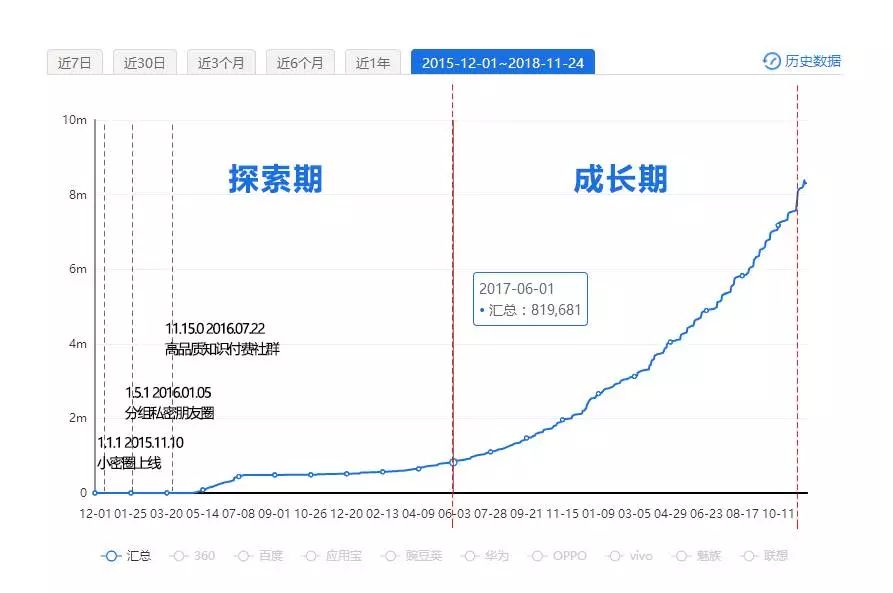 从上图可以看出,知识星球目前应该处于成长期,在这个阶段,用户处于快速增长期,用户对产品有一点的熟悉度,市场开始明朗,知识星球作为一个高质量的付费社群工具,在市场上暂时没有高度类似的竞争对手,所以在这个阶段,产品的核心运营策略应该是深度挖掘用户的价值、提升用户体验感、搭建用户生态等。