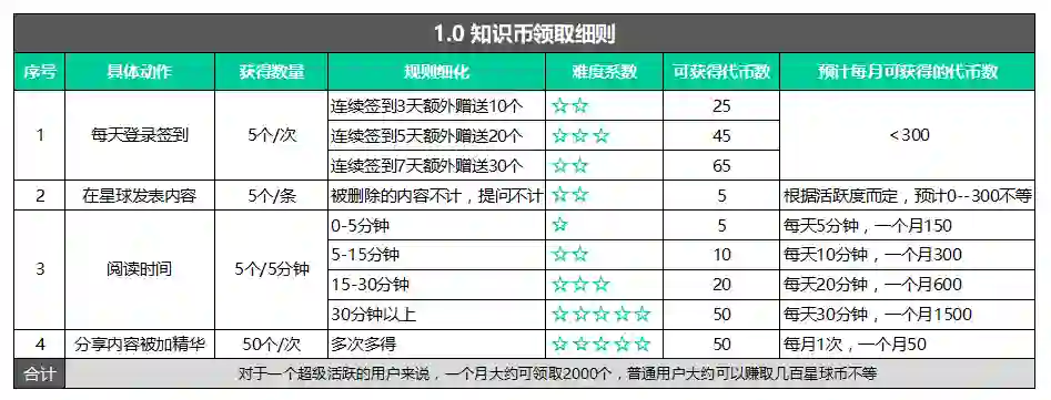 1. 该激励体系的设置考虑到可操作性,代币的获得和使用规则尽可能的简化,不超过3种方式,当用户对于该体系有一定的了解之后,可以再去丰富规则。