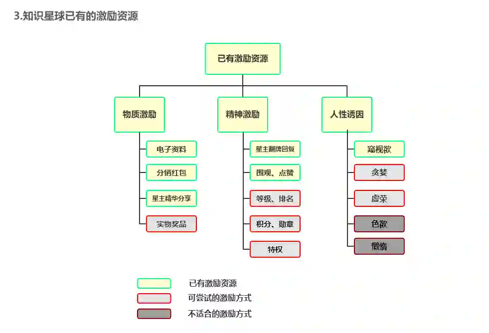 3. 该激励体系主要的思考点是,将知识星球打造成一个用户愿意停留和彼此交互的高质量生态体系,需要高价值的PGC内容支撑,激励体系只能锦上添花。