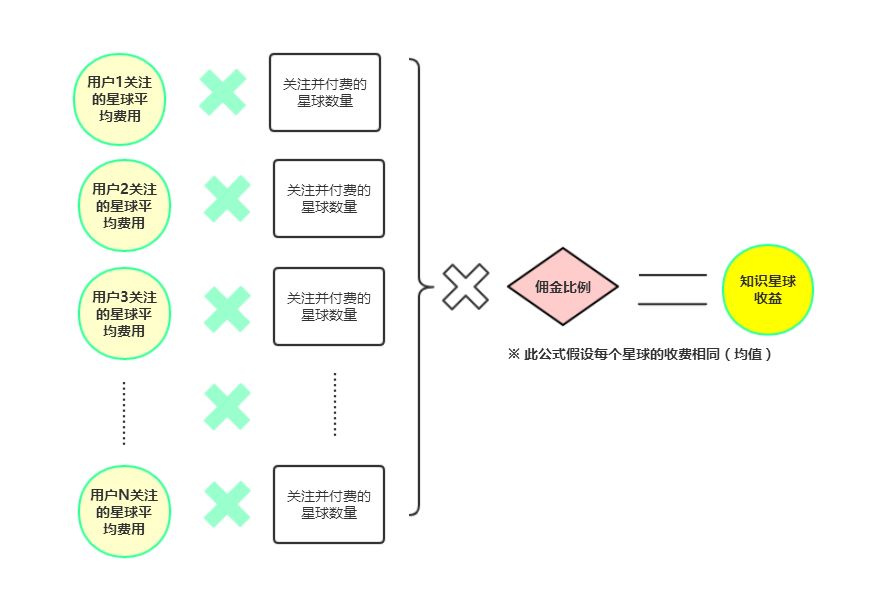 知识星球是一个高度垂直的小圈子社交平台,暂时无商业广告,主要靠从内容创作者的收益中收取佣金获利,属于用户付费意愿不强,但是付费之后使用频次相对较高。获益公式如下: