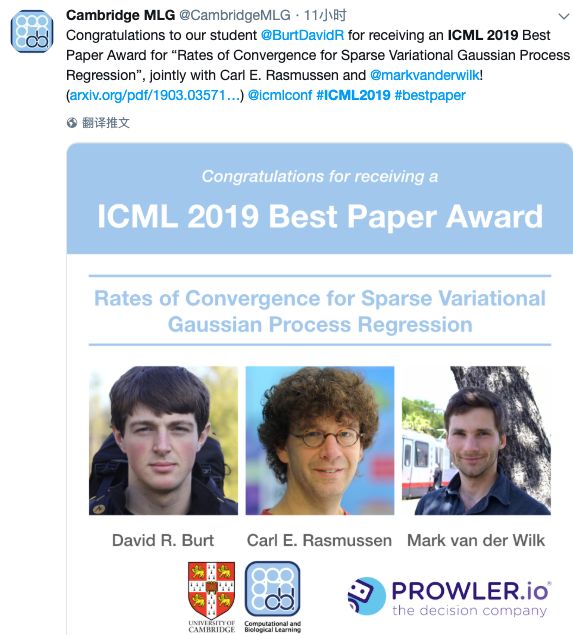 6 月 11 日,在美国加州长滩举行的 ICML 公布了 2019 年最佳论文奖,来自苏黎世联邦理工大学、谷歌大脑等的团队和英国剑桥大学团队摘得最佳论文奖项,此外,大会还公布了 7 篇获最佳论文提名的论文,获奖团队来自 DeepMind、牛津、MIT 等。据统计,此次大会共收到 3424 篇提交论文,深度学习、通用机器学习、强化学习、优化是提交最多的子领域,但最终录取的论文仅有 774 篇,谷歌更是成为被接受论文最多的霸主。