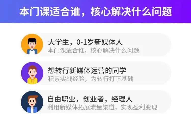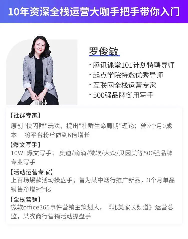 也许,你也想学好新媒体,只是缺少合适的渠道。为了帮助渴望入职就能上手工作的新人,起点课堂和@罗俊敏老师联合打造《新媒体运营实战班 | 自学课》,从内容创作、活动策划、社群运营三大板块,帮助新人全面提升新媒体运营能力。