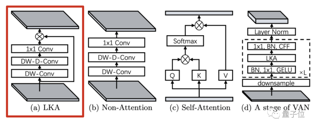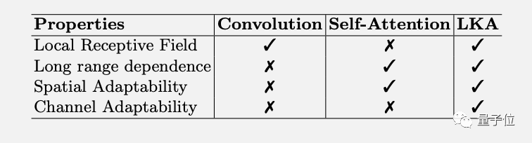 更关键的是,再加上一步element-wise相乘可以获得类似注意力的效果,团队把新的卷积模块命名为大核注意力LKA(Large Kernel Attention)