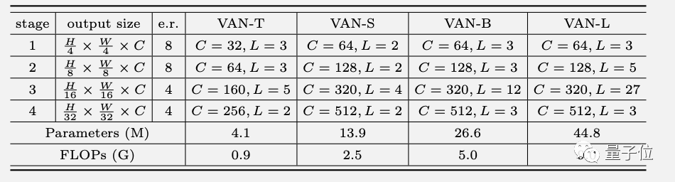 根据LKA方法设计的新Backbone网络VAN,延续了经典的四阶段设计,具体配置如下。