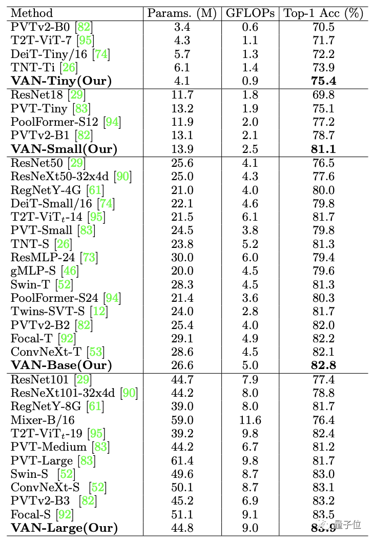 论文最后还提到,现在的VAN只是一个直觉的原始版本、没有仔细打磨,也就是说后续还有很大提升潜力。