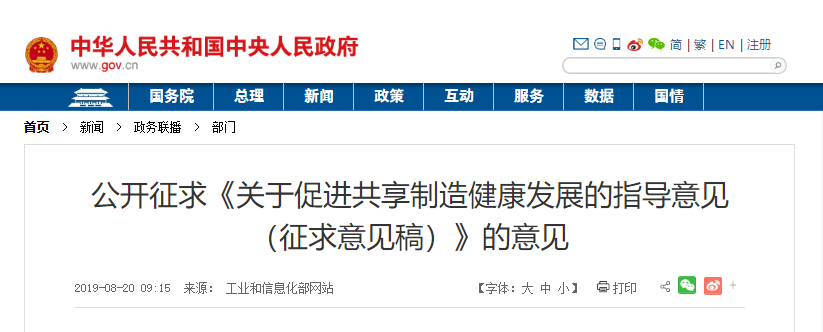 近日,工信部公开征求《关于促进共享制造健康发展的指导意见(征求意见稿)》的意见,加快推动共享经济在生产制造领域的创新应用,培育发展共享制造新模式新业态,促进制造业高质量发展。