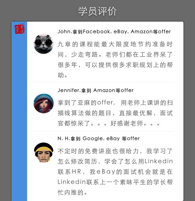 美国Top 4 CS名校硕士,本科国内Top 1 名校文科专业,现任顶级IT公司工程师,曾斩获包括Facebook, Google, Amazon, Linkedin在内的多家IT名企的offer,对人工智能领域颇有心得。