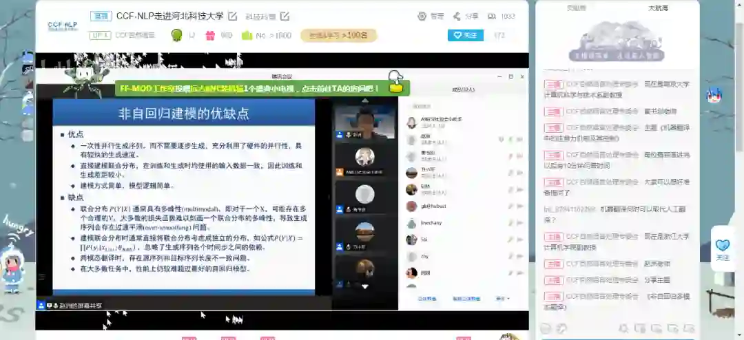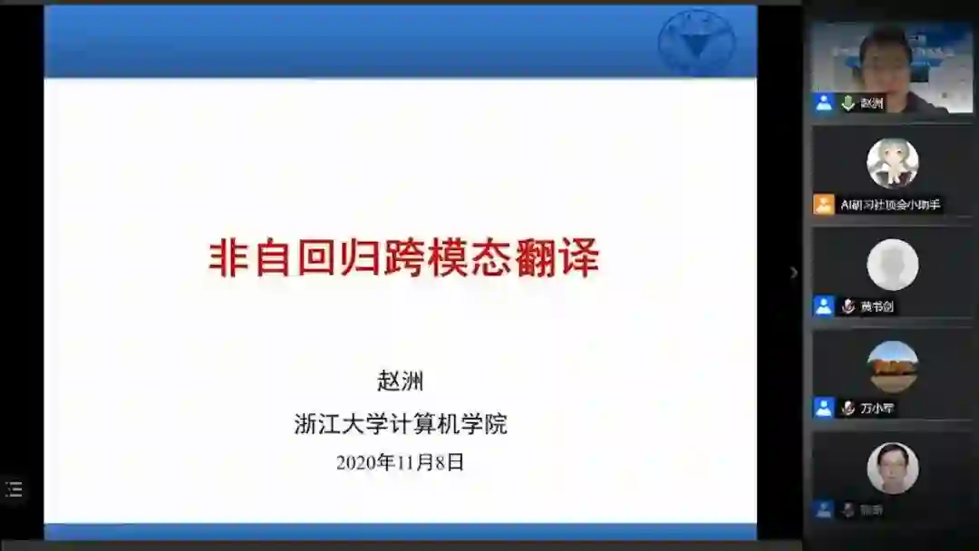 接下来的问答环节中,赵老师对同学们提出的“非自回归跨模态翻译的竞争力是什么?”“唇语识别如何处理歧义?”“多模态翻译有哪些应用场景?对哪些人的帮助会比较大”等多个提问进行了解答。