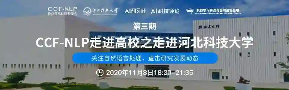 AI科技评论按:2020年11月8日,由中国计算机学会自然语言处理专业委员会(CCF-NLP)发起,联合AI研习社及各个知名高校开展的“CCF-NLP走进高校”系列高校NLP研究分享报告会——河北科技大学站,通过线下报告会和线上会议直播相结合的方式进行。