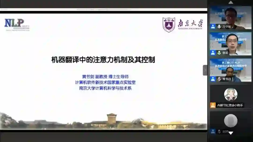 本次报告会上,专家们围绕《机器翻译中的注意力机制及其控制》、《非自回归多模态翻译》、《对话系统的两个挑战》等NLP热门话题展开了精彩报告。