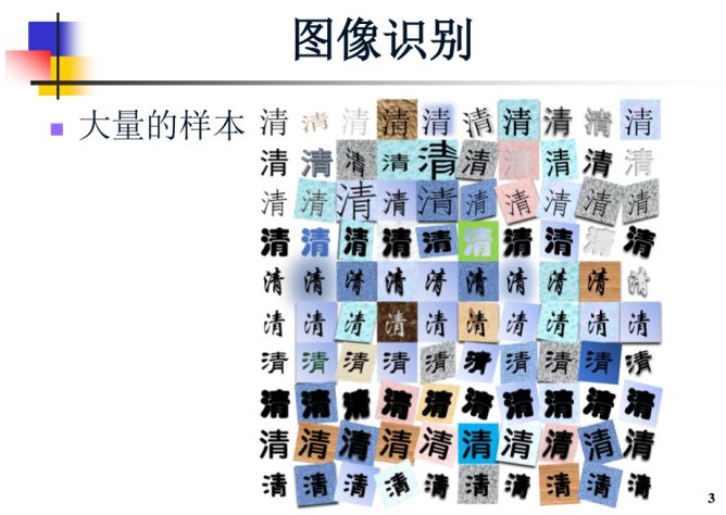 比如我们要识别清华大学的“清”,通常的做法是收集“清”的各种各样的图像,所谓各种各样的图像就是说要包括不同的字体,不同的光照,不同的背景噪声,不同的倾斜等,要想把“清”字识别好,就需要收集上很多这样的样本。那么这么做得困难是什么?
