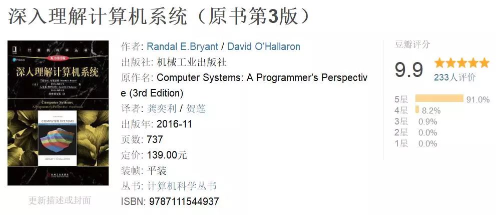 本书的最大优点是为程序员描述计算机系统的实现细节,帮助其在大脑中构造一个层次型的计算机系统,从最底层的数据在内存中的表示到流水线指令的构成,到虚拟存储器,到编译系统,到动态加载库,到最后的用户态应用。