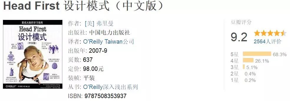 本书同样是Oreilly的Head First系列中的一本,书中依然采用插入大量的插图、图例的方式来进行辅助讲解,完整地涵盖了四人组版本全部23个设计模式。