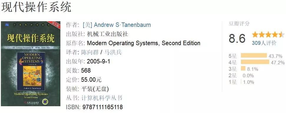 本书是操作系统领域的经典之作,书中全面而详细的介绍了操作系统的概念与算法。